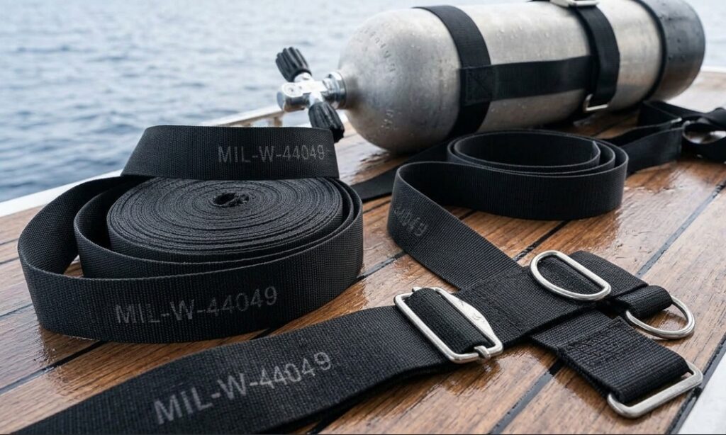 Contrairement aux sangles utilisées dans la parachutisme, cette sangle n’est pas élastique et elle offre une meilleure résistance aux agents chimiques.